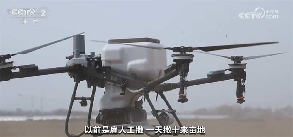 陕西省西安市临潼区某种植专业合做社理事长尚小林称:“这是本年刚买的无人机,第一次用,一个小时撒肥一百多亩地,大大提高了工做效益。以前是雇人工撒,一天撒十来亩地。”!
