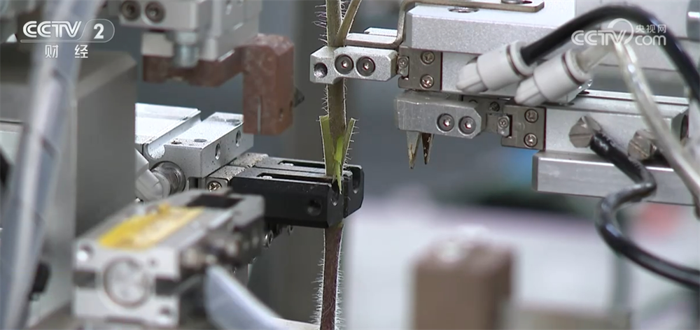 正在桐乡市数字种苗将来农场,茄果类嫁接机械人正通过两侧的机械悬臂,精准夹起预备嫁接的番茄苗,将其放置正在转盘的夹合器两头。跟着机械轴的动弹,左侧番茄苗的顶端被剪去,左侧番茄苗的下端被削成楔形。最初,处置好的接穗和砧木的暗语被快速精准地贴合正在一路。短短三秒钟,便完成了整个嫁接过程。
