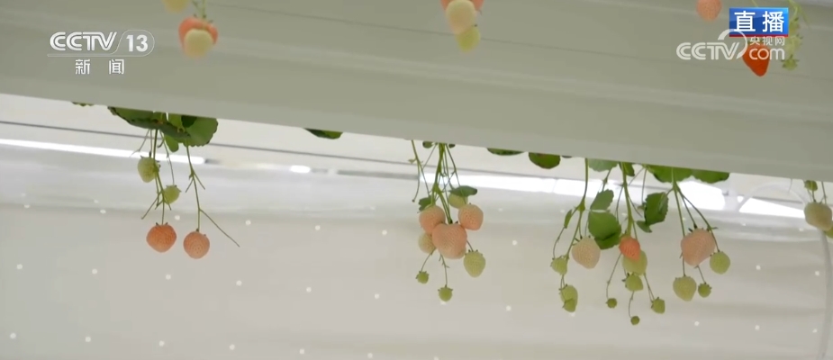 这里的草莓不是种正在地里,而是种正在立体种植槽里,通过钢丝吊挂正在半空中。每行种植槽都能够零丁进行起落,随时调理想要的高度。这几行陈列出了很有条理的阶梯感,远远看过去就像是半空中的“草莓瀑布”。