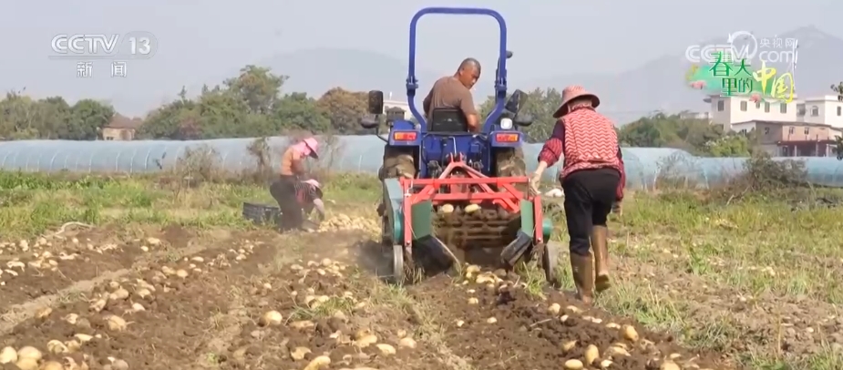 正在南安市官桥镇漳里村的种植,种植户驾驶着马铃薯收成机正在田间开展采收功课。一个个马铃薯翻腾而出,掉落田间,其他种植户分工协做,忙着分拣、拆箱。这个丰收季,本地采用“机械+人工”的采收体例,估计清明节前后,可完成采收工做。