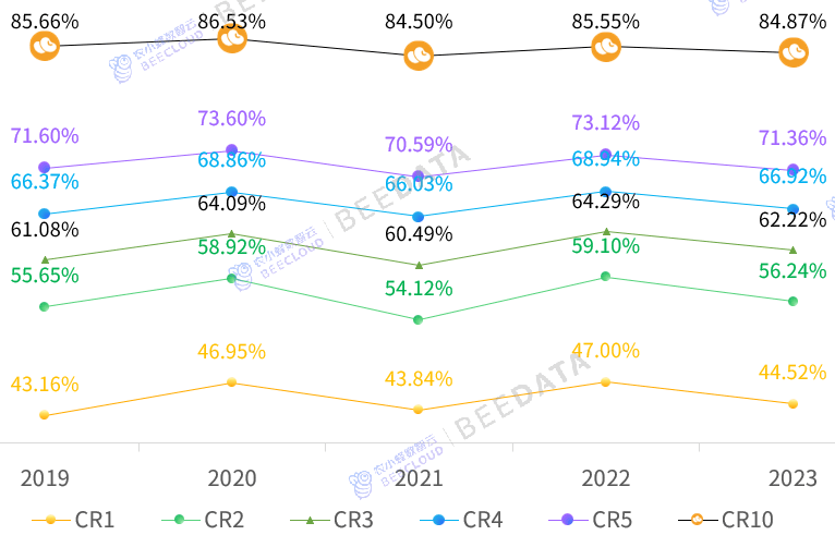 分析来看,2019~2023年,中国各省大豆产量CR5、CR10波动下降,CR1、CR2、CR3、CR4小幅添加,此中CR1增加最为较着——意味着中国大豆出产仍然呈现集中态势,并且这种集中正在“”产区的态势有更进一步集中的趋向。