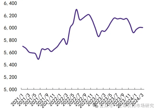 农药去库周期,行业无望送来底部反转。美国 2021 年进口农药 40。92 万吨,是世界上第二大农药进口国(仅次于 2021 年进口农药 44。55 万吨的巴西),其农化库存正在全球市场中具有代表性。2023 年美国全体农化库存比拟 2022 年有所下降, 2024 年一季度美国履历一轮去库高峰后,库存爬升趋缓,将来无望逐渐回归合理程度。此外,我国出产农药量中70%-80%为出口导向,2023 年以来我国农药出口有所回升,2024 年跟着国际市场库存的逐渐消化完成,估计下半年国际市场对中国农药的进口会持续添加。