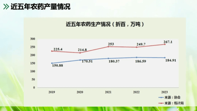 2014-2019 年,我国通过地盘、环保等政策办法严酷节制资本华侈、“三废”排放量大、污染严沉的农药新减产能,能耗高、手艺程度低、污染物处置难的农药产物的出产转移,加速掉队产能裁减。期间我国农药原药产量下滑,这是我国农药行业逃求高质量成长的成果。2020年以来,跟着满脚复产前提企业数量的添加和新产能逐渐,农药全体供应好转。2021-2022年,受疫情影响,农药企业开工率不脚,农药供无限,叠加上逛原材料跌价,最终农药价钱大幅上涨带动农药市场进入高景气阶段。2023 年以来,跟着新冠疫情管控终结,市场预期经济强劲反弹,农药行业投资再次兴起,农药产物进入新一轮产能扩张,热点产物规划投建产能持续增加。按照监测,2021-2023前三季度国内农药行业新减产能杀虫剂 13。94万吨/年、杀菌剂 17。84万吨/年、除草剂 24。21万吨/年、两头体 113。5万吨/年以及制剂 53。64 万吨/年。投资最热品种包罗除草剂草铵膦(精草铵膦)、烯草酮;杀虫剂氯虫苯甲酰胺、啶虫脒和联苯菊酯;杀菌剂丙硫菌唑、吡唑醚菌酯。规模化产能集中导致阶段性供给过剩,企业合作激烈。