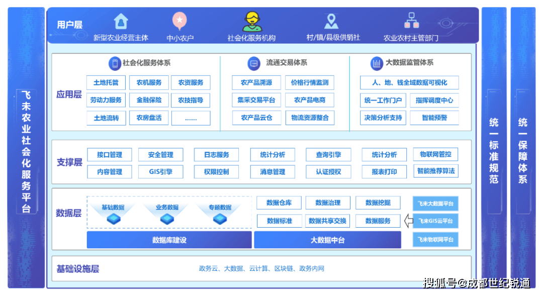 基于同一尺度规范取保障系统准绳,农业社会化办事平台锚定 “农业出产专业化、社会资本集约化、农产物畅通数字化” 的成长方针,全力打制别具一格的 “1 + 2 + 3 + N” 产物架构。此中,“1” 代表着并世无双的同一聪慧决策驾驶舱,仿佛整个平台的 “聪慧大脑”,掌控全局、精准决策;“2” 聚焦于两大环节支持中台,即数据中台取营业中台,二者彼此协做,前者好像消息 “蓄水库”,汇聚海量数据,后者好似高效 “加工场”,将营业流程优化升级;“3” 出力于三大焦点使用系统,涵盖社会化办事系统,切实保障农业出产各环节的专业办事落地;畅通买卖系统,为农产物斥地顺畅的数字化畅通渠道;大数据监管系统,为平台平稳运转保驾护航。而最初的 “N” 则彰显出矫捷应变的特征,可以或许根据现实扶植需求,量身定制 N 类多样化使用,全方位满脚农业成长的多元。
